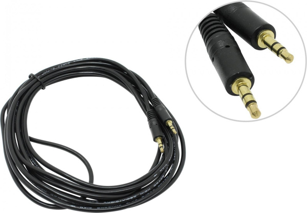 Аудиокабель 3.5мм jack - 3.5мм jack 5.0м, ExeGate EX-CCA-404-5.0 черный