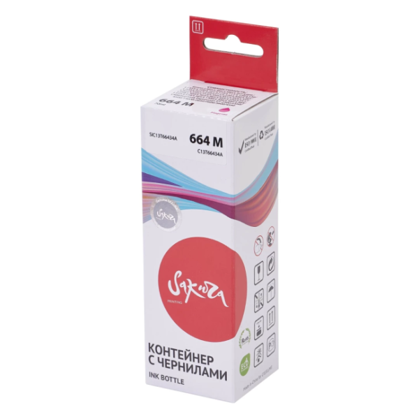 Чернила совместимые Epson 664 Magenta (C13T66434A), пурпурный, 70 мл (Sakura)