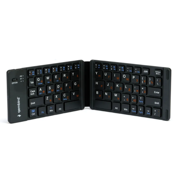Клавиатура беспроводная Gembird KBW-6N ‒ удобный вариант клавиатуры для решения основных задач на компьютере. Особенность модели в складной конструкции и использовании ножничного механизма клавиш. Клавиатура представляет собой две рабочие панели, которые имеют 66 низкопрофильных клавиш. Ножничный механизм позволяет получить четкий плавный отклик с низким уровнем шума.