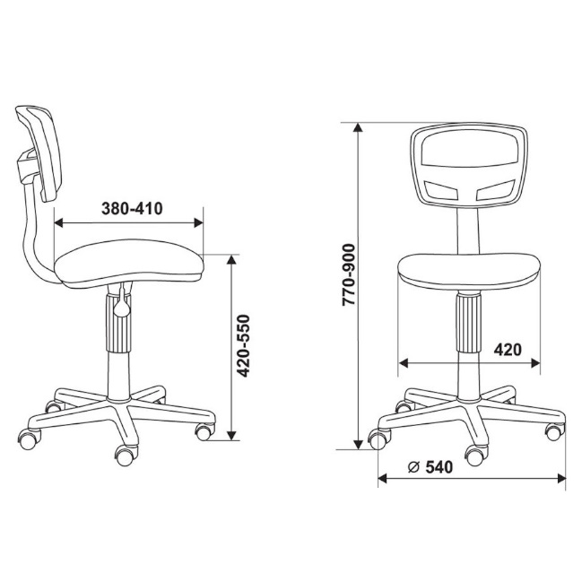 | Высота сиденья (мин), мм | 420 |