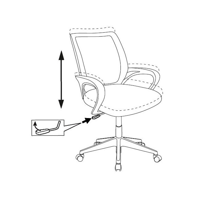 Высота с подлокотниками (мин), мм