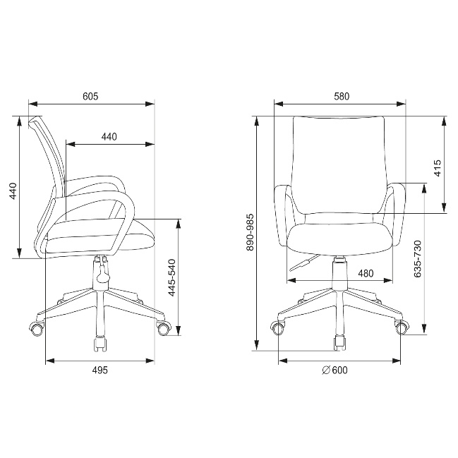 Высота кресла (мин), мм 890
