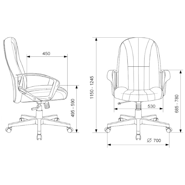| Высота с подлокотниками (мин), мм | 685 |