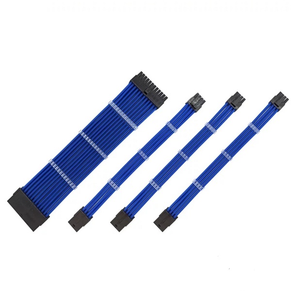 —Комплект удлинителей питания материнской платы, процессора, видеокарты, 0.3м, синий