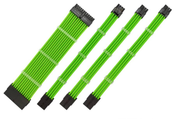 —Комплект удлинителей питания материнской платы, процессора, видеокарты, 0.3м, зеленый