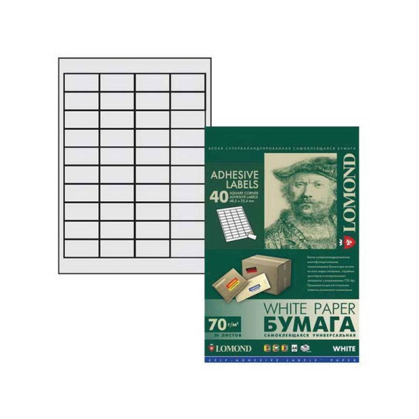 —Этикетки Lomond, белые, А4, 105x74.3 мм, технологическая упаковка 1650 листов