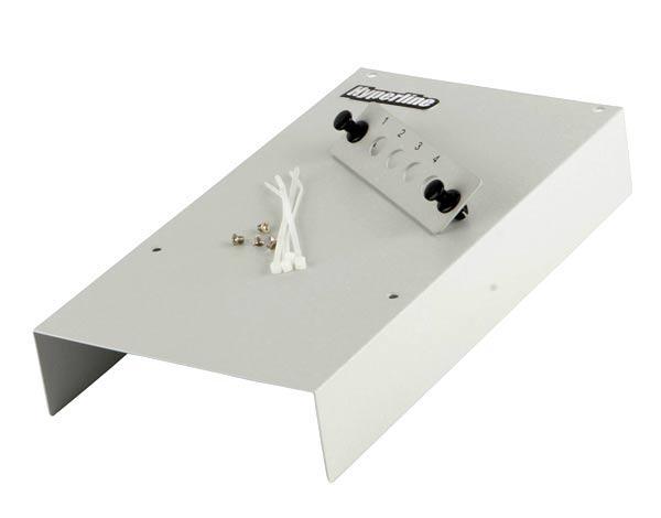 Бокс оптический настенный на 4 порта (SC, duplex LC, ST, FC) с держателем для 8 КДЗС, фиксатор центрального силового элемента, держатель оболочки кабеля (без пигтейлов и проходных адаптеров)