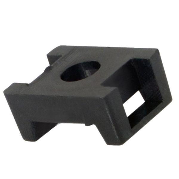 Площадка для крепления стяжки 22.2 х 16 мм  позволяет с помощью  винта или самореза прикрепить пучки проводов, стянутые хомутом, к любой поверхности. Выполнена из пластика чёрного цвета и оснащена специальным отверстием под хомут. Размер площадки 22,2х16 мм.