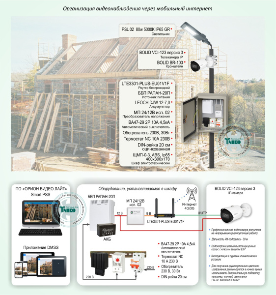 Типовое решение организации локальной системы видеоконтроля за территорией (объектом) реализовано на оборудовании Болид, KEENETIC, Бастион, TDM ЕLECTRIC и предназначено для: