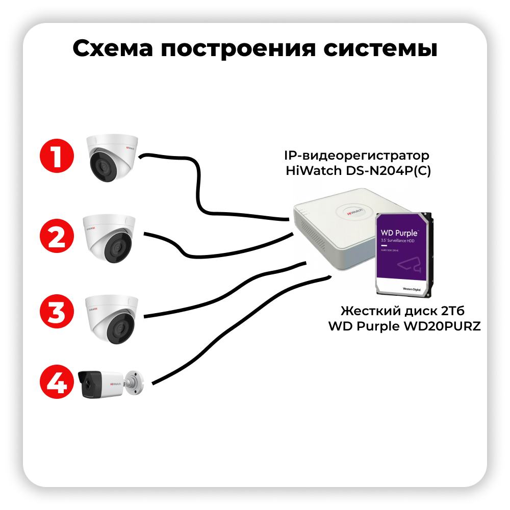 1. 4-канальный видеорегистратор DS-N204P(C) с PoE (можно подключить до 4 IP-камер и 1 HDD до 8 Тб) - для записи видео-/аудиоинформации. Запись видеоизображения с разрешением до 4 Мп.