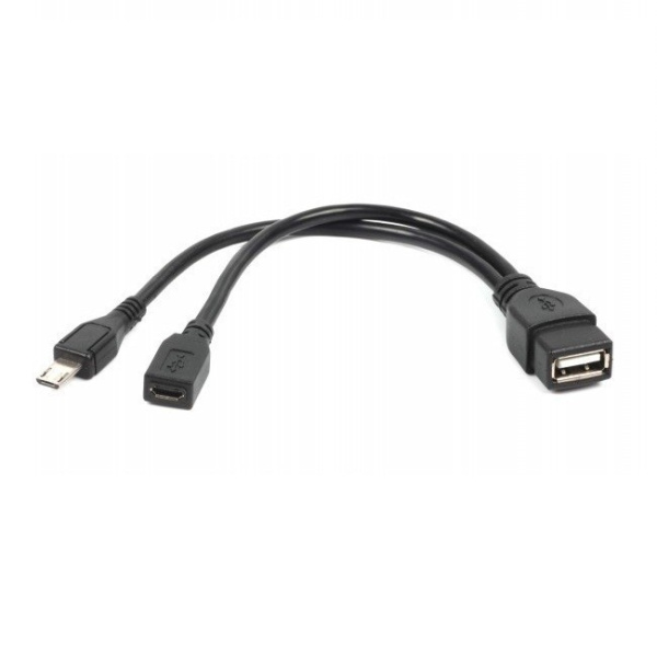 —Кабель-переходник OTG microUSB - USB+microUSB 0.15м, Cablexpert A-OTG-AFBM-04 черный