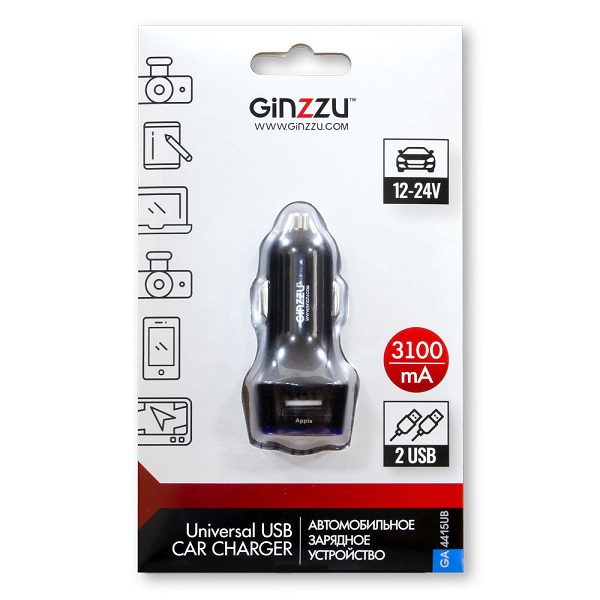 —Автомобильное зарядное устройство Ginzzu GA-4415UB черное